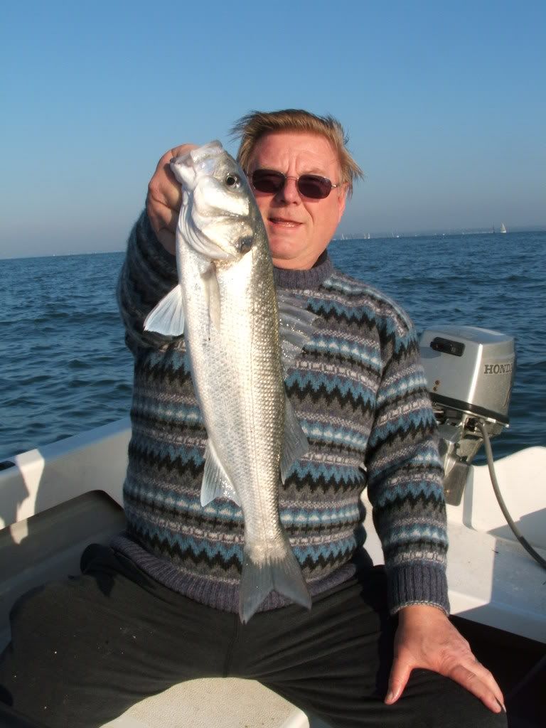 Took the boat out early Sunday morning for a little look up and down the Solent. We found a load of gulls working mid way across over some sizeable bass. Scrambling for the spinning rods, we had a fair few on plugs and even on feathers! Unfortunately all too soon the tide started to ease off and they dissipated ...........didn't want to catch them all day anyway, that just would have been boring!!!